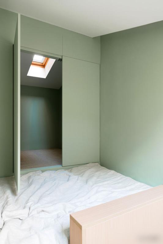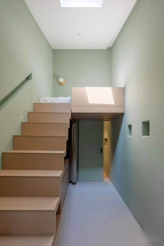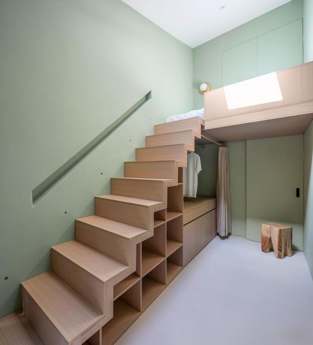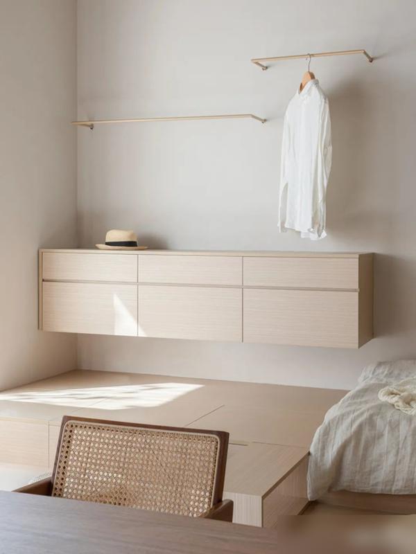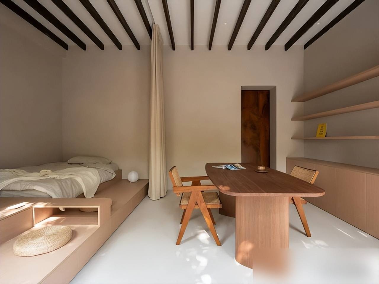 空间小不怕,就怕不会榨干每一寸,3.5米的层高硬生生隔出两层,主卧和茶室拿麻布帘子一拉就分区,灵活得像变戏法。