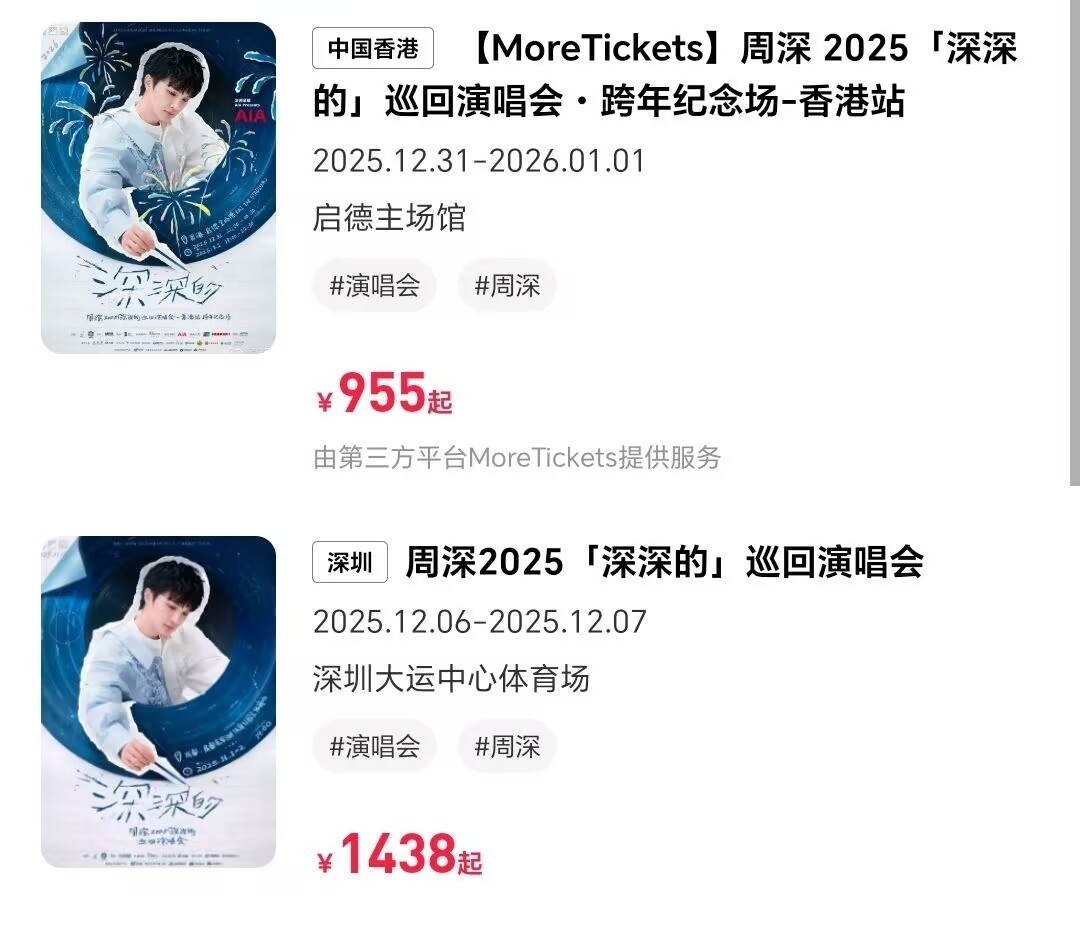 再结合二级票务平台的实际成交情况,周深演唱会的票务流动性强、溢价空间大,说明市场认可度极高。