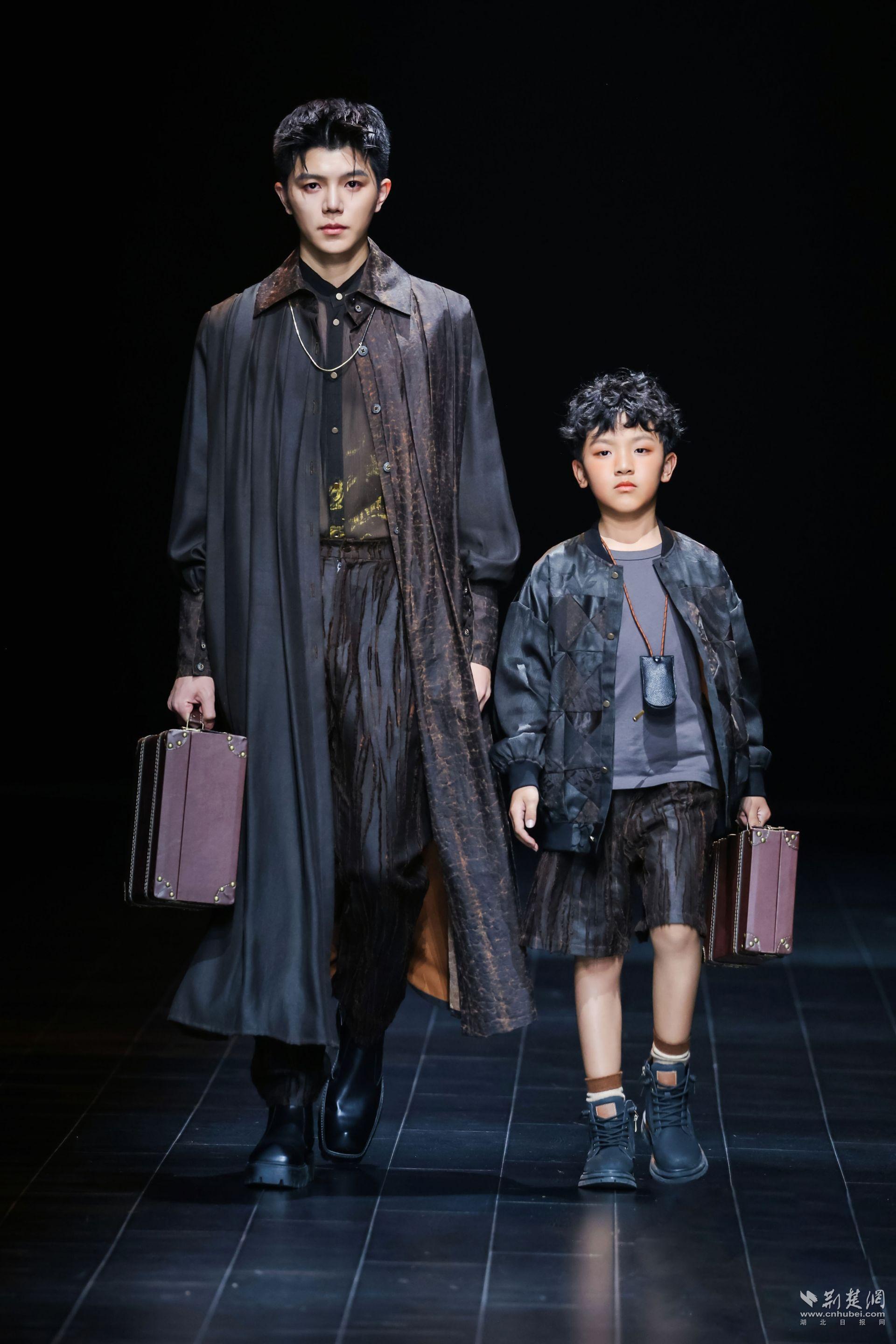 「时况」2026春夏童装系列以“百纳香云”为主题,融合香云纱与传统拼布技艺,承载“集碎成整、聚福庇童”的美好寓意。作品深入诠释中国“百纳”哲学,将往季余料,经“黑、赭、褐、金”四色归类,充分体现“惜物”精神,这是中国时尚对可持续发展理念最诗意的表达。